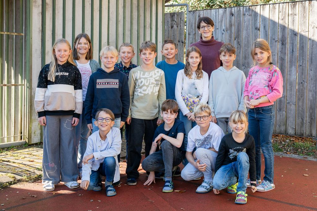 Klassenvorständin: Karin Mark Luisa, Madison, David, Benedikt, Bruno, Niklas, Frida, Ben, Amira Noah, Elias, Laurin, Marie (v. l. n. r.)