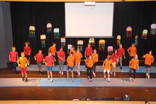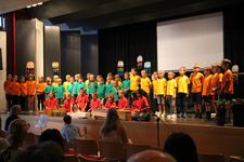 Das Programm war breit gefächert und sorgte für beste Unterhaltung: ein Trommelstück, selbstverfasste Erlebnistexte, ein Sommerrap, ein English-song, der Lesesong, ein Stück der Bläserklasse, eine fetzige Turn- und Akrobatikshow sowie ein Stand-up-Theater wurden geboten. Den Abschluss bildete die Ferienhymmne „Hurra, die Ferien sind da!“.
