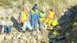 Im Dorener „Gschlief“ erlebten 11 neugierige Erstklässler eine spannende Biber-Exkursion mit Naturpark-Rangerin Carola. Mit Forscherdrang entdeckten sie viele Spuren der scheuen Baumeister: angenagte Äste und Bäume, Biberrutschen und Fußabdrücke. Leider bekamen wir weder einen Biber noch seine Biberburg zu Gesicht. Carola erklärte auch ganz kindgerecht, wie Berge entstehen und warum Rutschungen wie im Dorener Gschlief zustande kommen.