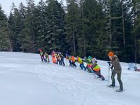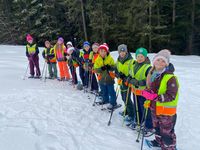 Am Mittwoch, den 15. Jänner begaben sich die Viertklässler mit Lehrerin Karin Mark und den Naturparkrangerinnen Lisa und Lena auf Tierspurensuche. Mit dem Bus ging es in der Früh nach Sibratsgfäll, wo Lisa und Lena schon warteten.. Nach ein paar Aufwärmübungen marschierten wir auch schon mit Schneeschuhen durch die wunderbare, winterliche Landschaft. Die Rangerinnen erklärten den Kindern die verschiedenen Arten von Tierspuren…Rehspuren, Hasenspuren, Eichhörnchenspuren, Mäusespuren, Wolfspuren, Auerhahnspuren, … einige davon entdeckten die Schüler dann auch auf der weißen Schneedecke. Weiters konnten sich die Kinder als Detektive beweisen. Es gab zwei verschiedene Tatorte, an denen Tiere ihre Spuren hinterlassen hatten. Die Schüler durften rätseln und herausfinden, was wohl an diesem Platz passiert war. Die Kinder entpuppten sich als hervorragende Spürnasen!