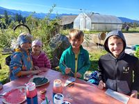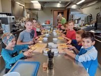 … In der Küche zauberten die Kinder aus den geernteten Kartoffeln und Karotten Kartoffelgratin und einen Karotten-Apfel-Salat.
