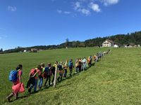 Nach einer großartigen Ernte im Schulgarten feierten die Kinder und Lehrerinnen der Volksschule das schon zur Tradition gewordene Erntedankfest beim Biohof Lingenhel.