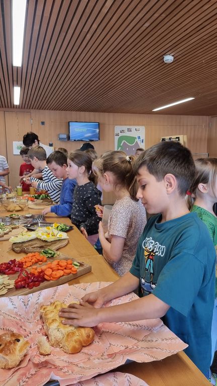 Am 07.04. hat die 2. Klasse für die gesamte Schule eine gesunde Jause vorbereitet. Mit viel Freude und Engagement wurden zahlreiche Köstlichkeiten hergerichtet.