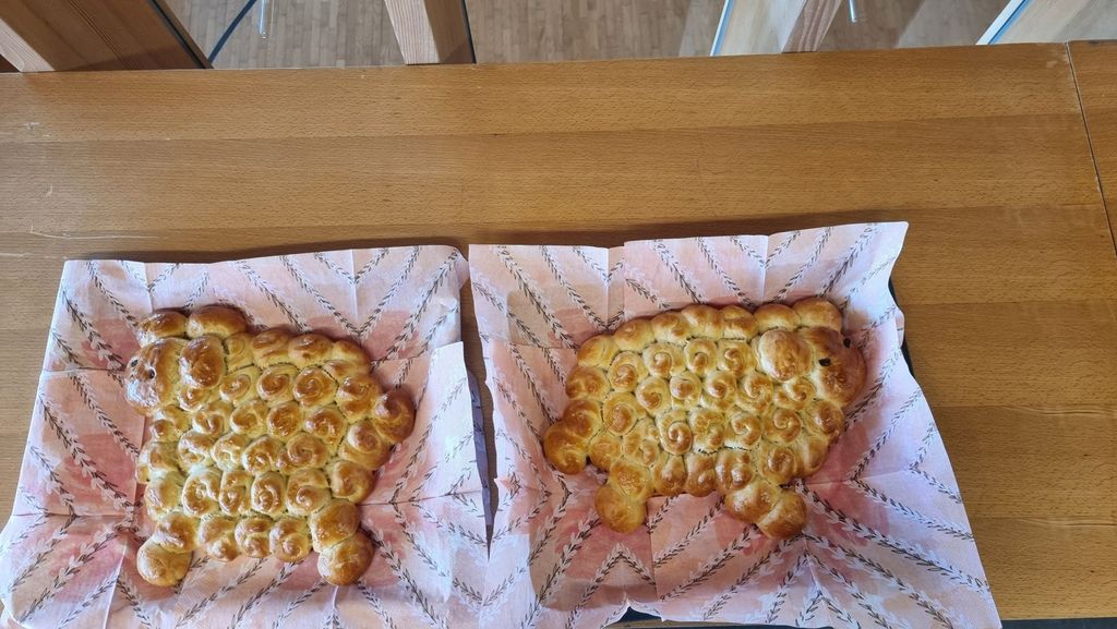 Es gab eine große Auswahl an frischem Obst und Gemüse, leckeres Müsli sowie liebevoll gestaltete Eier-Osterhasen und Gebäck in Schafsform.