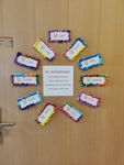 Dazu wurden tolle Namenskärtchen bunt gestaltet und an die Klassentüre gehängt. Das Mutlied der Erstklässler kennen inzwischen auch alle anderen SchülerInnen und es wird immer wieder mit Freude gesungen!
