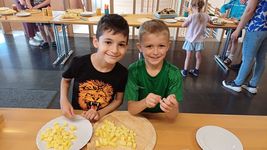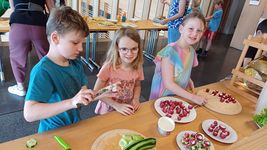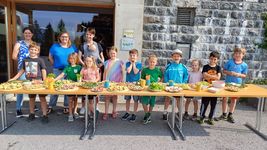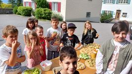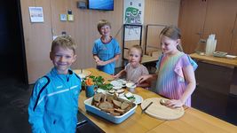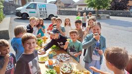 Am Dienstag 10.6.25 gab es die letzte gesunde Jause in diesem Schuljahr. Wunderbar vorbereitet von Anja, Brigitte und Rebekka durften die Zweitklässler noch mithelfen und das Buffet herrichten. Radieschen, Salat und Schnittlauch wurden frisch aus dem Schulgarten geholt.