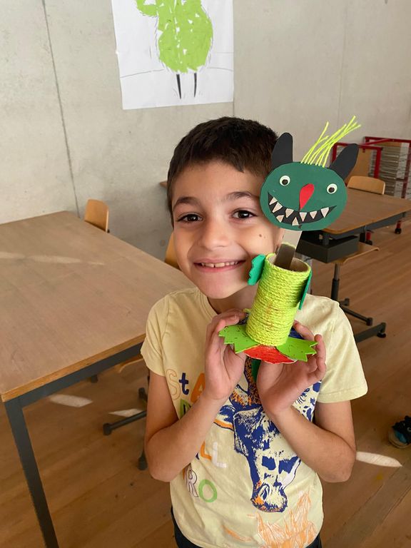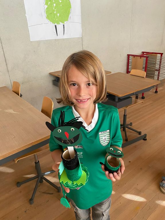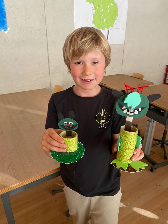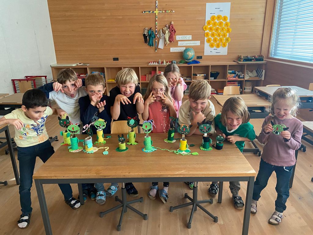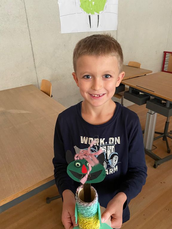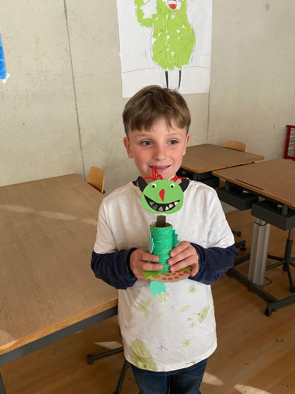 Im Werkunterricht lernten die Drittklässler die Grundlagen des Häkelns. Zunächst stellten sie eine Häkelschnur aus Luftmaschen her. Anschließend fertigten sie einen Stiftehalter in Monsterform an. Mit verschiedenen Materialien gestalteten sie Schwanz, Beine und Hände und natürlich lustige Gesichter.