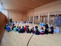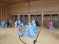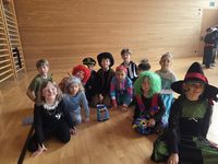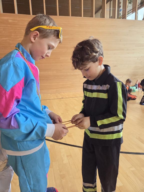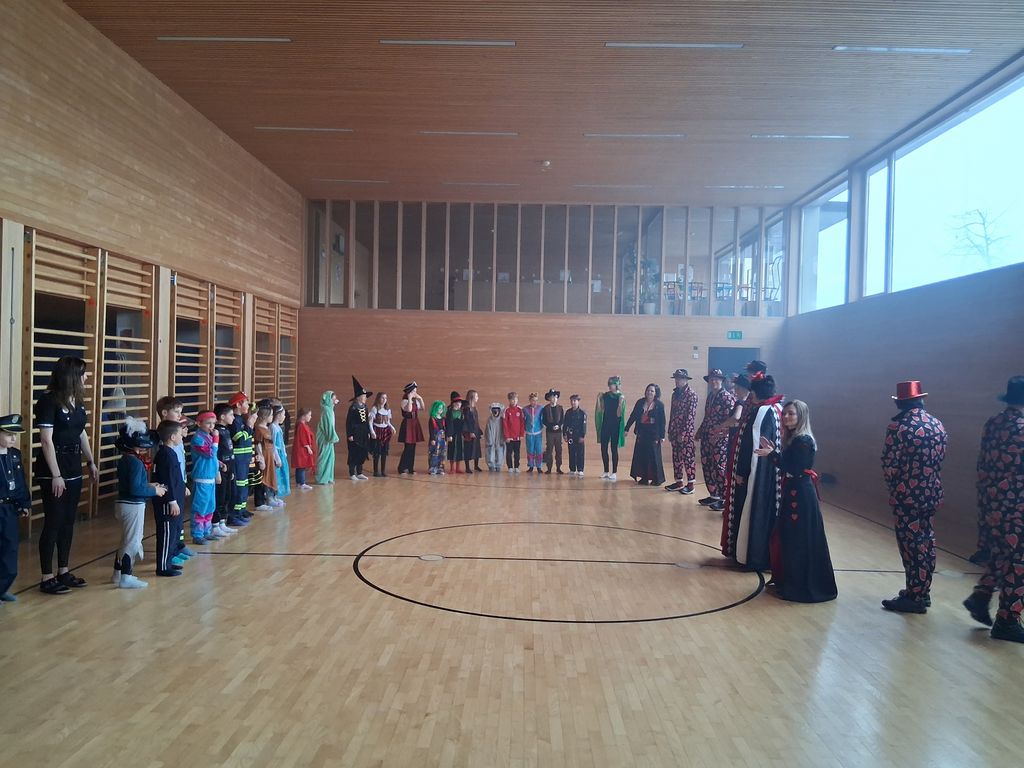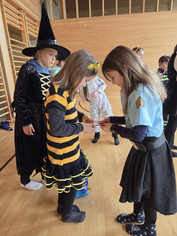Wie jedes Jahr startete unsere Faschingsfeier mit einer Party- Polonaise durch das Schulgebäude. Im Turnsaal wurde dann getanzt, gesungen und ganz viel gelacht. Die Kinder durften in Gruppen verschiedene Spiele spielen: Teamgeist war beim Fröbelturm gefragt, Geschicklichkeit beim Solettispiel, Schnelligkeit beim Walnussspiel und Durchhaltevermögen beim „Kugelschreiber zielen“. Der Spaß kam nirgends zu kurz!
