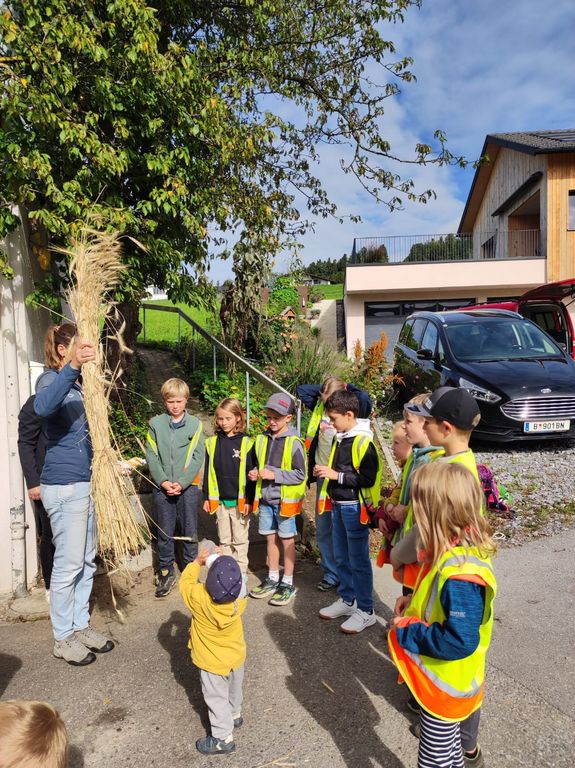 MIT den Halmen und den leeren Ähren haben die Kinder, der OGV und die Bäuerinnen noch viel vor.