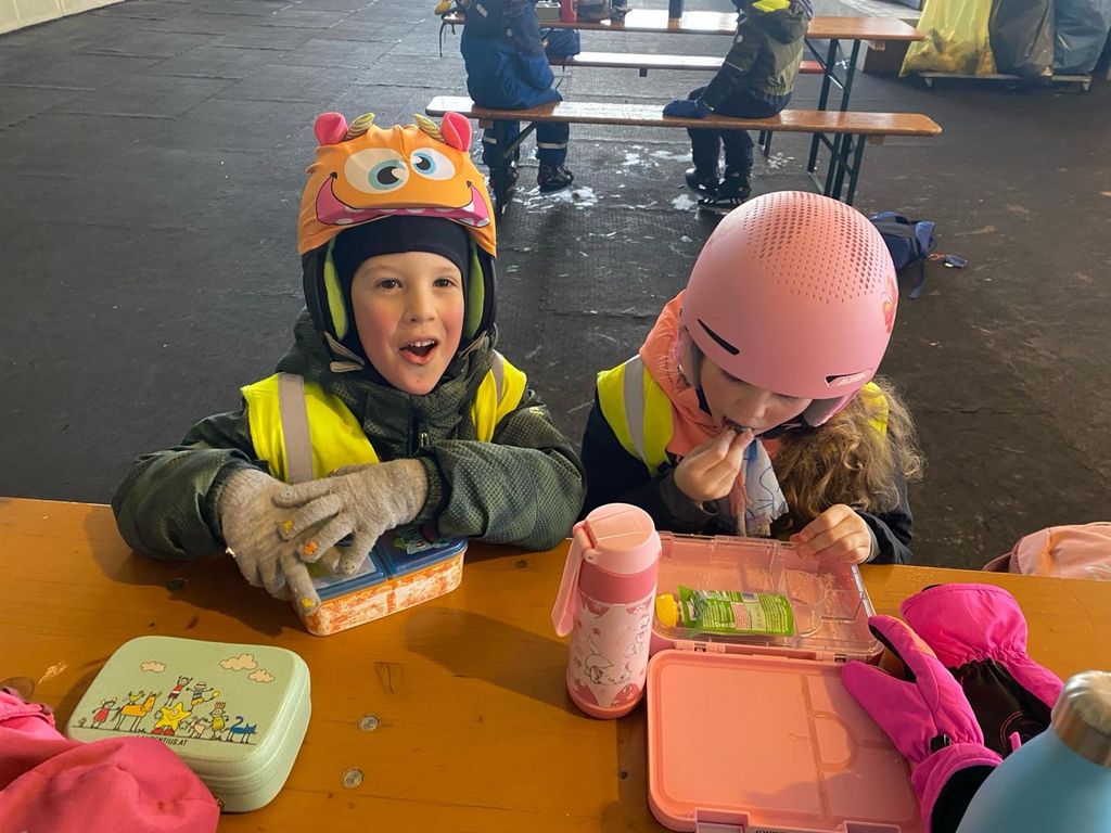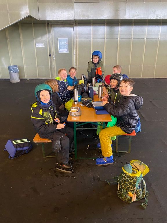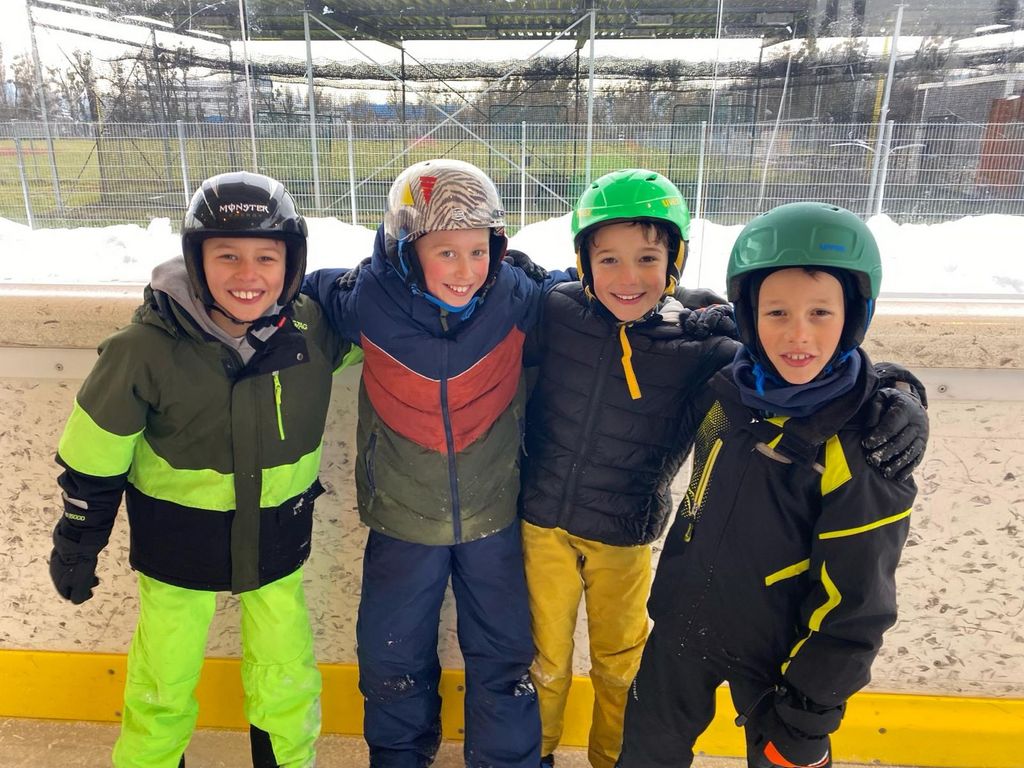 Dank vieler helfenden Hände von Mamas und Papas waren die Schüler im Nu startklar. Die Kinder hatten riesigen Spaß auf dem Eis.