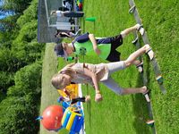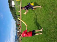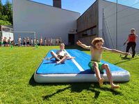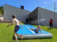 Für zwei Stunden durften sie sich bei einem Spieleparcours auf dem Sportplatz der Mittelschule Doren so richtig austoben. Das Highlight war natürlich für alle die Wasserrutsche!