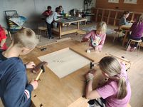 Zuerst war regelrechtes Durchhalten beim Sägen der Schnauzen angesagt, dann wurden die Igel bemalt und zum Schluss wurden die Stacheln aus Nägeln genagelt – das hat richtig Spaß gemacht!
