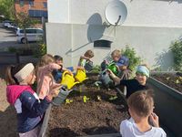 In unserem Schulgarten war heute viel los! Schon im Vorfeld kürten wir das Lieblingsgemüse der einzelnen Klassen und heute wurde gepflanzt und gesäht – schon bald wachsen Salat, Kohlrabi, Karotten, Zuckerschoten und Radieschen. Auch die Betreuung „ihres Hochbeetes“ übernimmt jede Klasse selber, zusammen mit den Klassenlehrerinnen.
