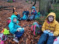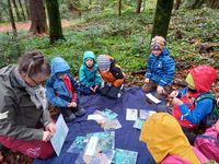 Auch wenn das Wetter nicht so recht mitspielen wollte, machte es den Kindern Spaß, draußen in der Natur zu lernen.